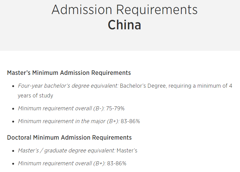 加拿大本科阶段申请,学校会有专门针对各个国家的GPA要求,其中对于中国学生的GPA要求普遍在80分以上,热门专业的要求则会更高。