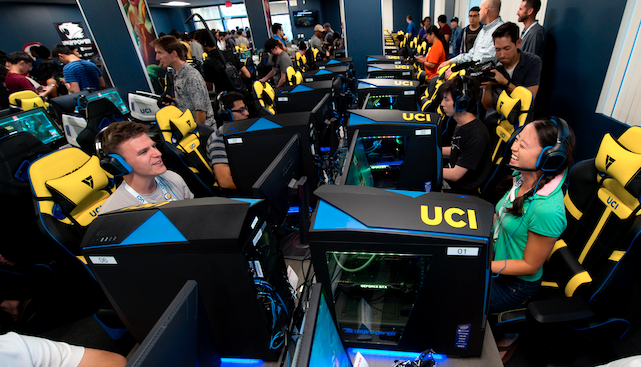 加州大学欧文分校是第一所创建大学电竞队的公立大学。他们主要关注《守望先锋》和《英雄联盟》,并向《英雄联盟》玩家提供5610美元奖学金,向《守望先锋》玩家提供2500美元奖学金。根据校园统计数据,大约72%的加州大学欧文分校学生玩电子游戏。加州大学欧文分校拥有美国最广泛的电子竞技设施之一,拥有70多台游戏电脑和一个用于游戏和比赛的大型竞技场。每台电脑和显示器都配有高质量的键盘、鼠标和耳机。还有一个主机和社区角供玩家玩其他主机游戏。