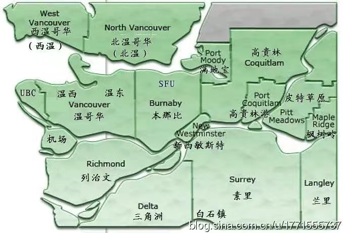 温哥华公立教育局紧靠UBC(不列颠哥伦比亚大学),且临近机场;本那比地区有SFU(西蒙菲莎大学);高贵林有高贵林港。