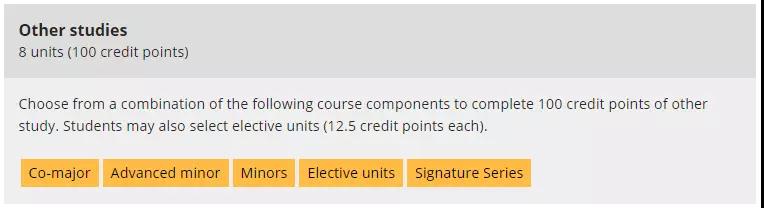 除了上述 200学分的核心课程学习外,同学们还可以在以下五大基本项目中灵活选择8门课程(共计100学分),例如辅修一门其他相关专业课程(如计算机科学或游戏与互动等等),或选择选修课程、其他相关项目等。
