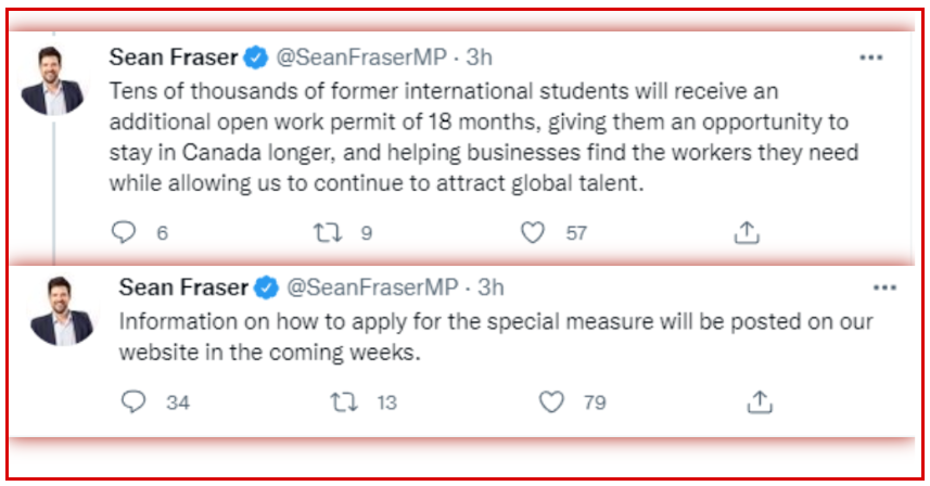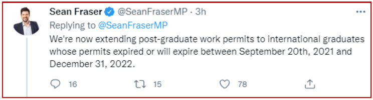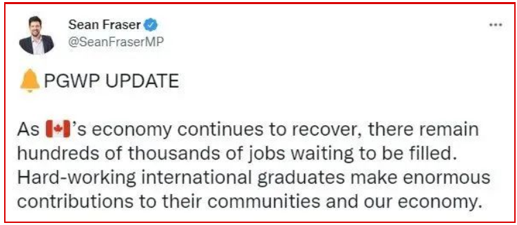 近日,加拿大移民部长Sean Fraser正式宣布,加拿大国际学生的pgwp计划可以再延长18个月!