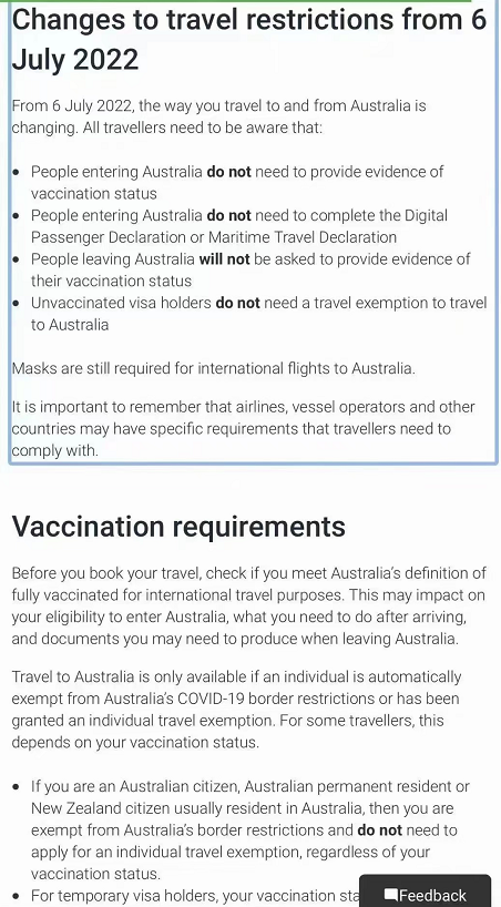 7月6日起,入境澳洲不再需要提供疫苗接种证明,入境前不再需要填写DPD数字旅客声明,未接种认证疫苗者,不再需要申请豁免入境~