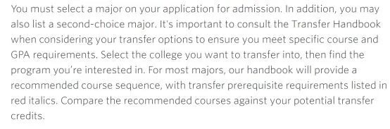 我们以伊利诺伊大(UIUC)为例,当你想从国内本科大学转学至美国本科大学时,UIUC要求国际转学生申请时 必须先选定一个专业 ,有需要的同学甚至可以选两个专业。