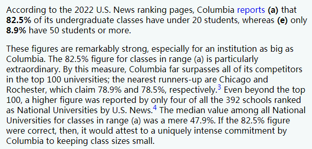 哥伦比亚大学汇报给U.S. News的师生比为6:1,而据其他途径测算数据约为11:1。