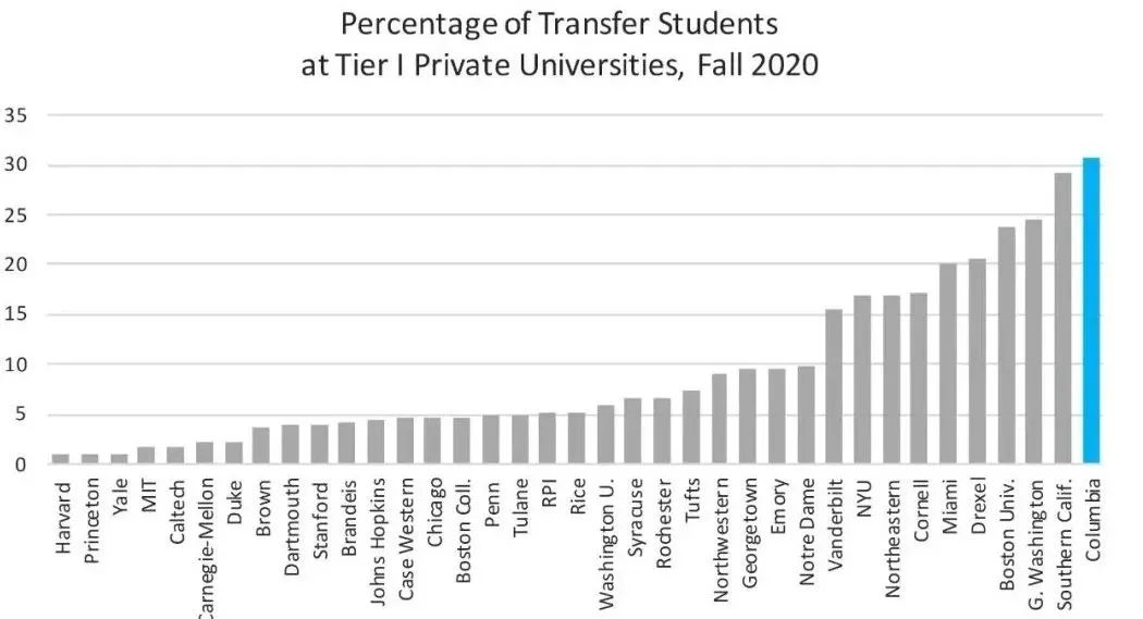 然而,转学至哥大的本科生占比达到30%。塞迪乌斯教授指出,尽管哥大非转学本科生六年毕业率达到96%,转学生同期毕业率仅为85%。因此哥大毕业率指标应该有所夸大。