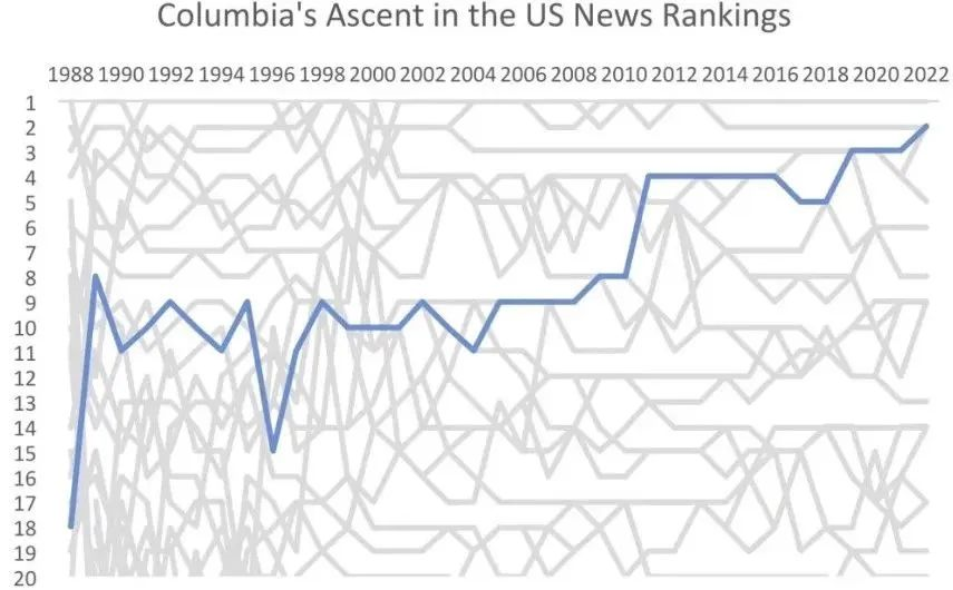 今年,哥伦比亚大学在排名中上升一位至第二;该大学仅被普林斯顿超越,与哈佛和麻省理工并列,Thaeus 博士指出,哥伦比亚在 1988 年排名第 18 位,他认为这一上升是显著的。“为什么哥伦比亚的命运如此显着改善?” 这些存在疑问。