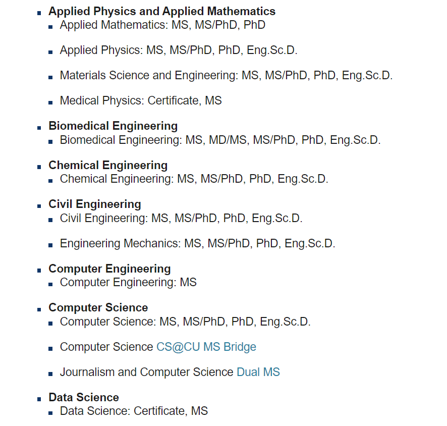 - 哥伦比亚大学工程学院内 有大量热门专业 。