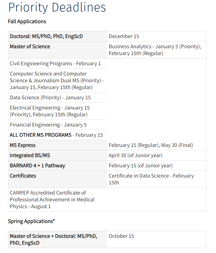 另外, 哥伦比亚大学工程学院2023入学春、秋两季的申请时间也出炉了 。
