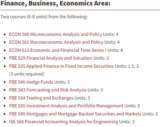 金融工程硕士课程的目标是培养具有工程、应用数学或物理背景的研究生,将数学和工程工具应用于金融。这一多学科教育计划涉及维特比工程学院、马歇尔商学院和文理学院(经济系)。金融工程使用金融和经济、工程、应用数学和统计学的工具来解决衍生证券估值、战略规划和动态投资策略、风险管理等问题。具有这些技能的毕业生对投资和商业银行感兴趣,贸易公司、对冲基金、保险公司、企业风险经理、监管机构等。