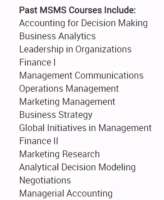 MSMS项目旨在增加企业的核心管理技能,课程每年会有变动,以往课程示例如下: