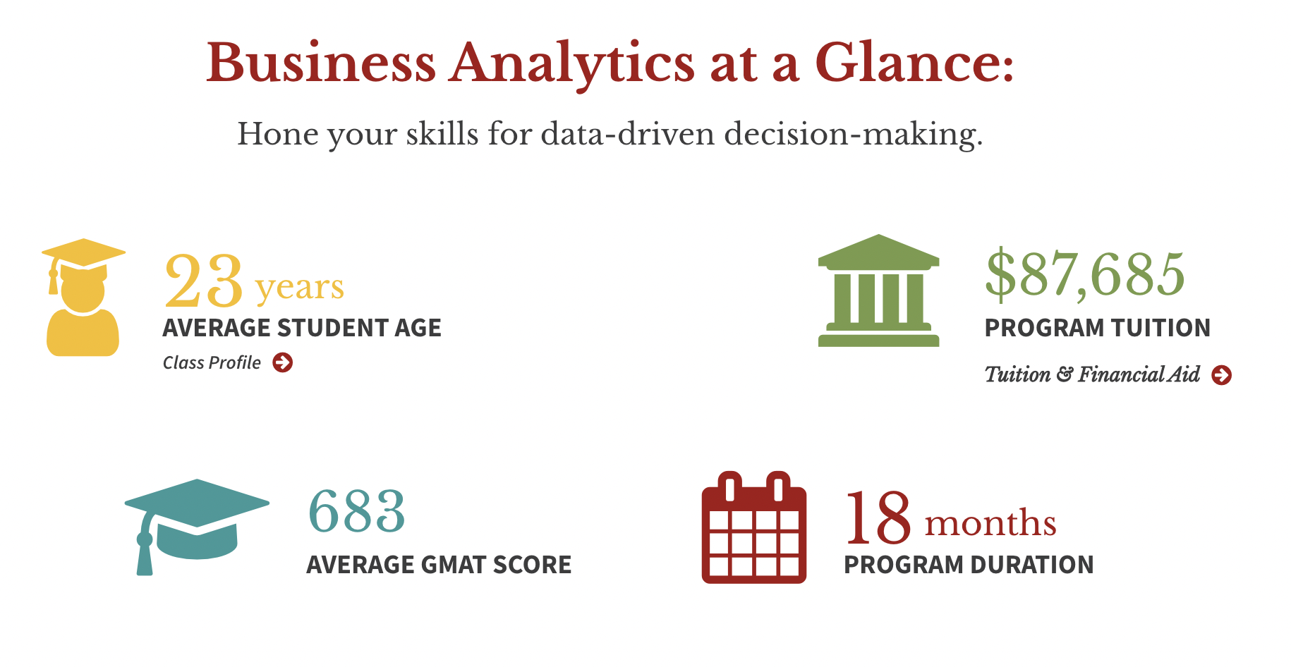 为期18个月的商业分析理学硕士(MSA)项目为毕业生应对当今的大数据世界做准备。通过将技术编程技能与解决商业问题的严格方法相结合,MSA学生获得了从海量数据中提取战略见解的工具和信心。在每个行业,企业都在收集数据——从零售库存记录到医院患者数据,再到信用卡交易等等——并依赖熟练的分析师来保持领先于商业趋势,建立预测,并推动对商业问题的创造性解决方案。