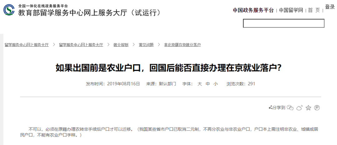 最近,有学生亲测在国外不满365天也成功落户北京了。