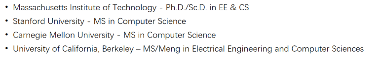 MIT、Stanfor、UC Berkeley 和 CMU 并成为 CS 届的“四大牛校”: