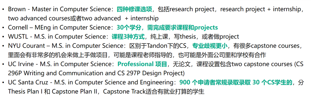 因此,同学们在专业选择时,可以先看一下 school of engineering 上是否有 CS 的项目;同时,是否有自己感兴趣的方向的细分;如果没有,可以关注一下相关方向的选修课。