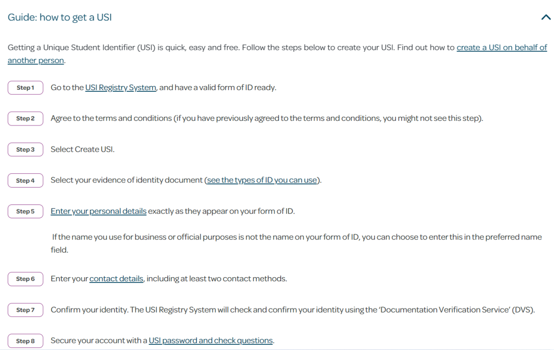 对于留学生来说,在2023年1月之后完成课程,如果无法提供USI,将面临无法毕业的风险。每个USI都需要创建一个网上账户,里面包括了学生的全部学习记录、成绩单以及培训认证,可以随时随地查看。