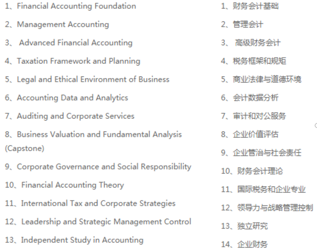 课程描述:会计硕士课程旨在培养学生成为会计专业人士,他们不仅具有会计,而且还有财务,法律,职业道德和战略规划的先进知识。该计划为广泛的领域提供严格的学习体验,包括财务和管理会计,税务,审计,法律,财务管理,公司治理,会计分析,战略管理和业务领导。