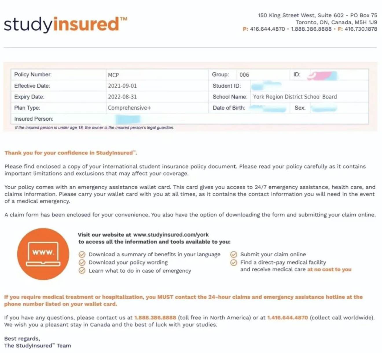 而安省的约克教育局YRDSB,同样规定学生必须购买医保后才可以顺利注册。