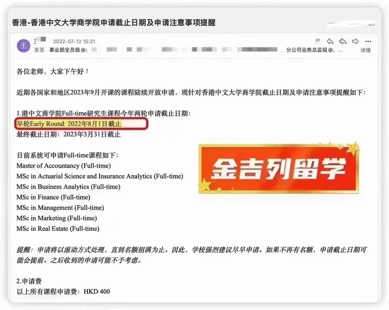.港中文商学院Full-time研究生课程今年两轮申请截止日期: