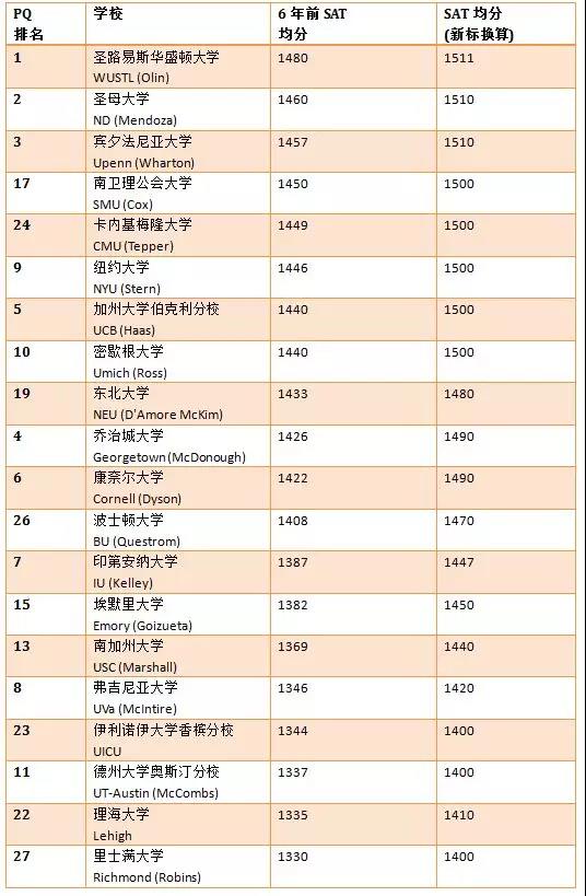 1.其中增长最多的是 南卫理公会大学考克斯商学院SMU-Cox ,在过去的6年中,该学校的SAT录取平均分从1280分提高到了1450分,整整上涨了170分。