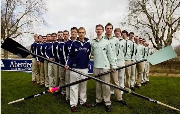 在1829年查尔斯·沃兹沃斯创办了牛津·剑桥赛艇8人对抗赛,其实就是一个牛津学生和他在剑桥读书的朋友突发奇想随便玩玩的,可没想到自从第一次比赛,牛津大学队胜利了以后,就开始了两校一百多年在这一项目上的竞争。。。除了战争年间,停赛了几年,从未间断,延续至今 。