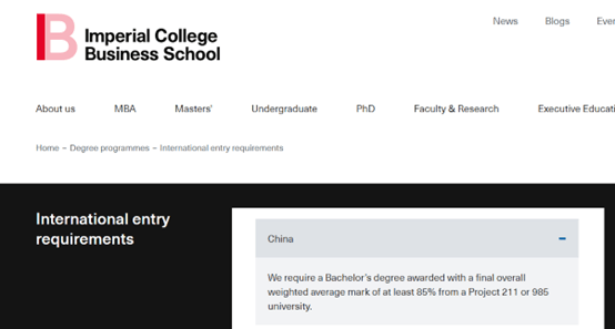 近来有学生收到帝国理工商学院的邮件回复,称不接受本科非985/211的学生申请。