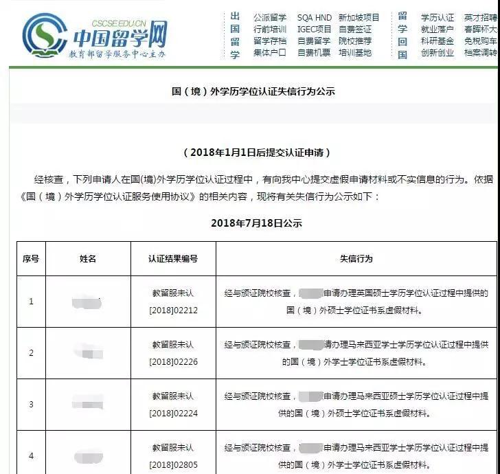 在之前国外留学还能办理学历认证的时候,可能有些留学生在遇到考试挂科了毕不了业的情况之后,首先想到的是看有没有办法做学历认证。然而,随着留学生的增多,留服对学历认证政策的收紧,现在在国外留学未毕业的情况已经不能再学历认证了。并且,在18年1月1号也出台了新的政策,凡是国外留学未毕业,回国办理学历认证的,涉及到虚假材料,在认证过程中一旦被查出来都会进入学历认证失信黑名单,并且该名单也会在官网上公示,同时也会纳入国家信用管理体系综合治理。