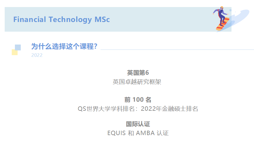 学生将学习现代金融理论、金融市场、信息技术及其在金融中的应用。该课程将帮助学生准备好成为金融和技术行业的专家,提高终身学习技能和个人发展,为整个社会做出贡献。