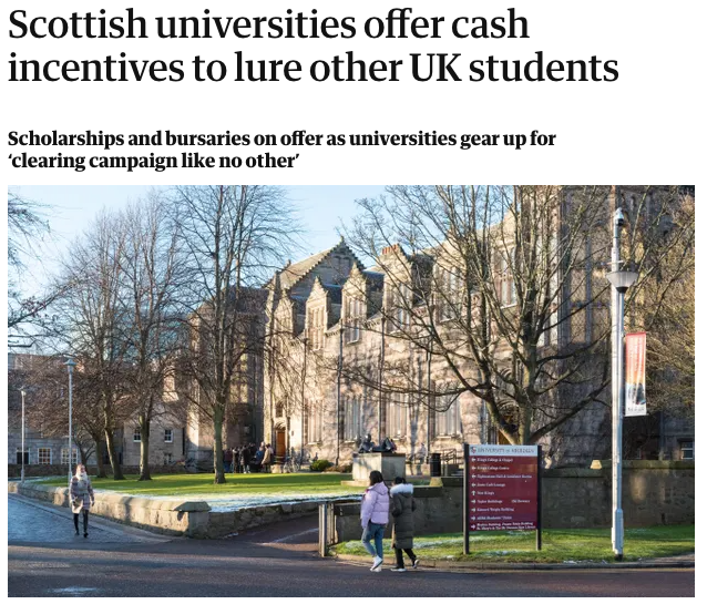 英格兰大学最近纷纷拉高门槛的同时,另一边的苏格兰大学却打算靠发钱来“抢”学生?