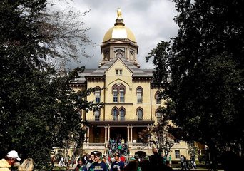 圣母大学 (University of Notre Dame ,又音译为诺特丹大学 ) ,始建于 19 世纪中期,经历了一个多世纪的辉煌,享誉全美,是一所私立 天主教 大学、 研究型大学 ,位于美国印地安纳州的南本德,本科教育稳居全美 20 所顶尖学府之列。 2018 年 USNews 美国大学排名,圣母大学排 18 名。 《 纽约时报 》给予圣母大学最高的五颗星的学术评分。截止 2017 年,共有 2 位诺贝尔奖得主曾在圣母大学求学,分别为 Eric Wieschaus (1995 年生理学奖 ) 和 James Muller(1985 年和平奖 ) 。