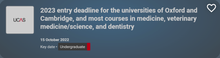 牛津、剑桥大学的所有专业,包括大部分医学、兽医、牙医等专业都截止申请。这些申请需要在10月15日18:00(英国时间)前提交到UCAS。