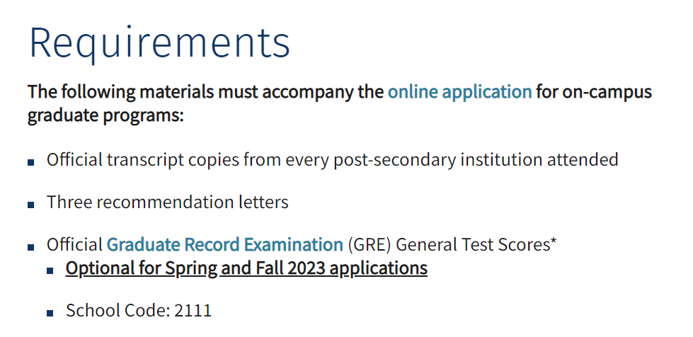 宾夕法尼亚大学工程学院在最近更新的申请要求中表示:GRE是optional选项,但2022-2023申请季建议所有研究生项目申请人提交GRE成绩。可接受GRE在家考。