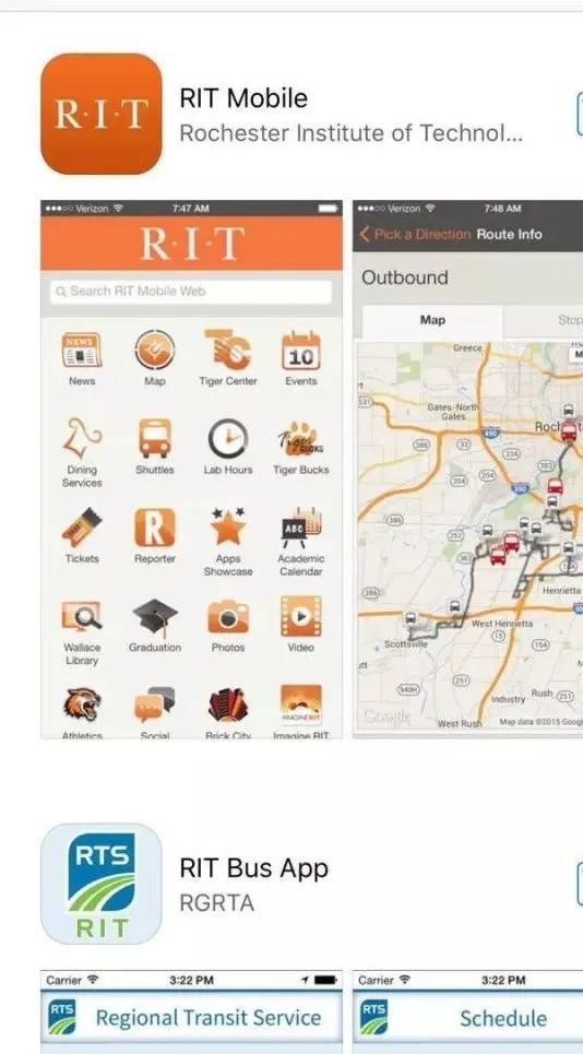 最后,这是一位学姐手机上安装的关于RIT留学用的APP截图,