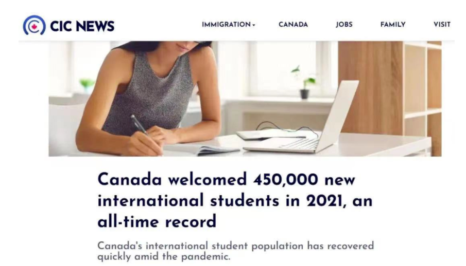 加拿大接收的国际留学生在去年达到了45万,
