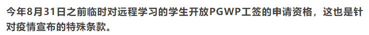 也就是说,即使今年你没在加拿大,只是在国内上网课,那你也是有很大的机会可以在加拿大申请PGWP签证找工作,甚至申请永久。