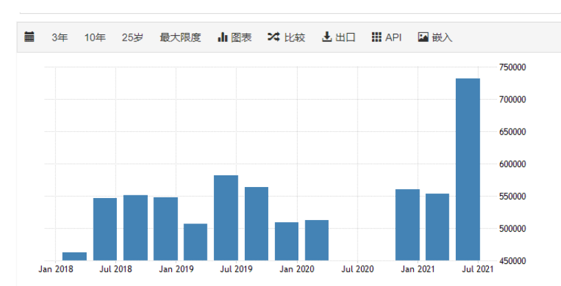 看看这数据统计,前几年都保持在50万左右,但2021年7月暴涨,直接多了20万!随着疫情的好转,加拿大政府急切需要振兴经济,对人才的需求也是日渐增长。
