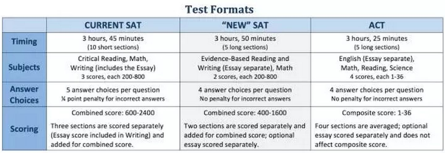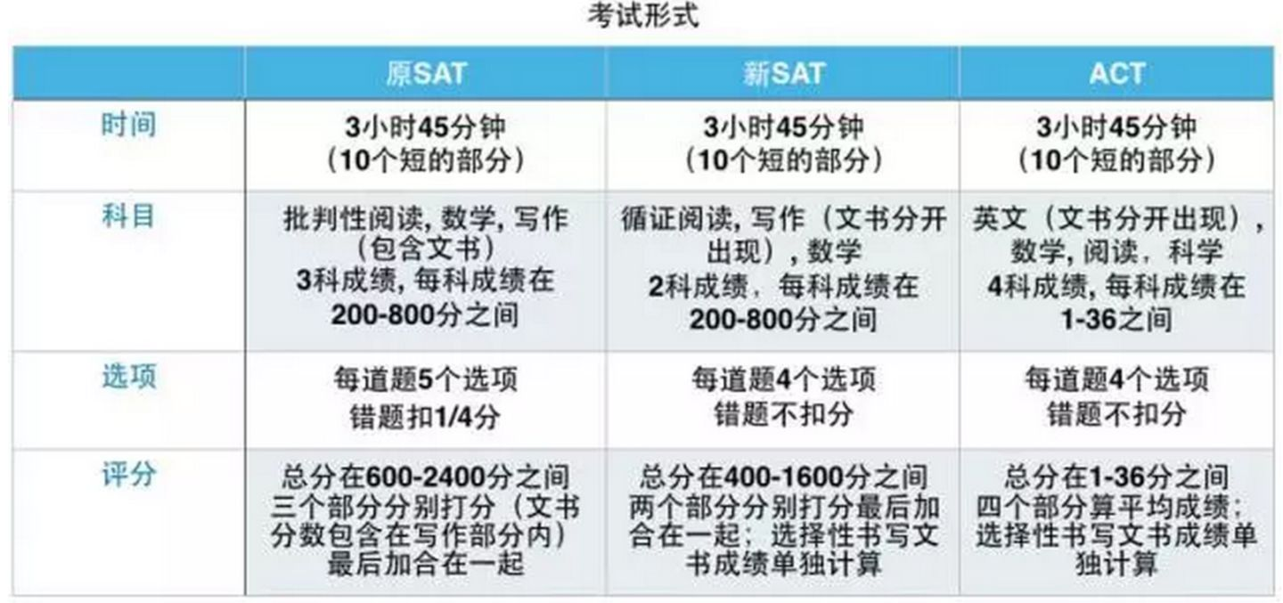 SAT和ACT是大多数美国大学用来衡量学生学术能力的一种参考。在美国,东西海岸的东西似乎更倾向参加SAT考试,而其他地区的学生们更多的参加ACT考试。
