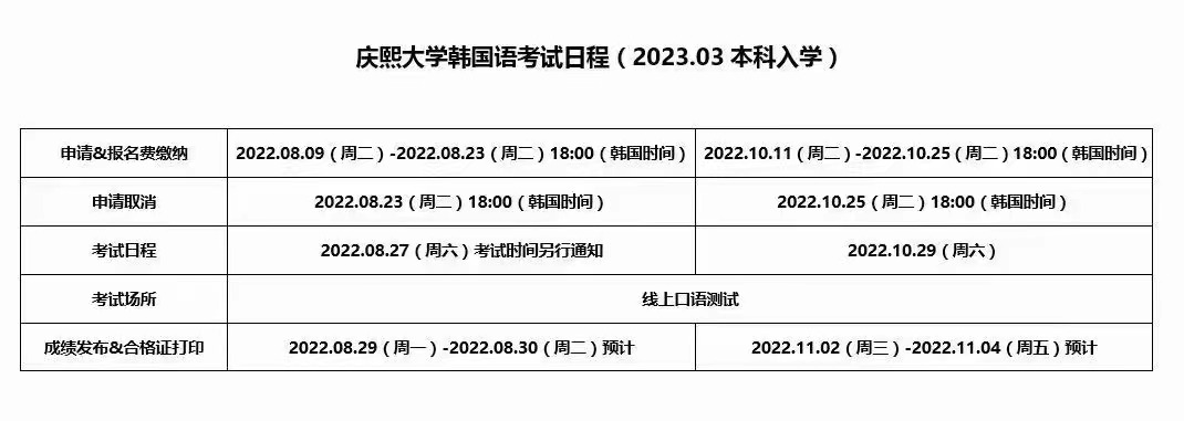 庆熙大学的本科和插班入读是可以参加校内考试的,校内考的安排已出,想要23年3月入学的学生不要错过~