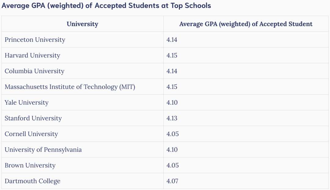 Your Grae Point Average (GPA) is one of the first criteria US college amissions officers will use to etermine the strength of your caniacy. At the most competitive universities, like those in the Ivy League, the average amit has a perfect GPA! It takes years to buil your GPA, so it’s vital to unerstan its importance early in your high school career.