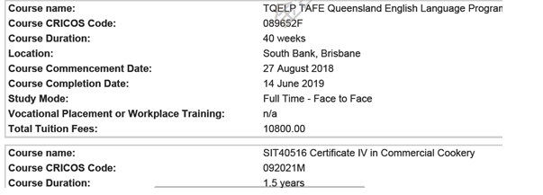 所以选择了昆省TAFE,而且学生申请的专业也不一样,学生想申请西厨和酒店管理专业,