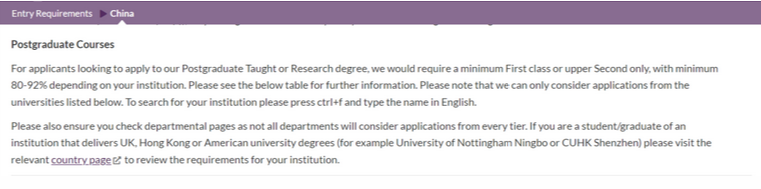 仔细阅读官网申请背景要求: 英国大学官网基本都会标出申请项目的最低要求,如果发现自己不符合,无论是背景还是专业课程不符, 可以考虑果断放弃 ,把申请机会留给更有可能的学校项目。