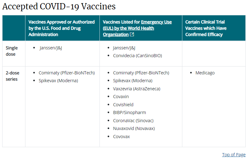 - 如果你打算在美国逗留60天或更长时间,你必须在抵达美国后60天内或在医学上适当的时候全面接种COVID-19疫苗,除非你有医疗豁免权或没有到接种疫苗的年龄。