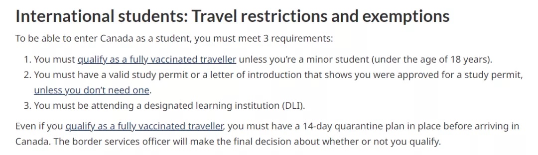 在留学入境方面,国际学生只需满足以下要求,并在入境前14天完成疫苗接种即可。而中国的科兴和国药疫苗均被加拿大政府所承认。