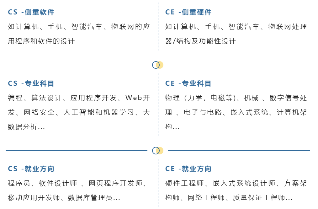 而计算机科学(CS)和计算机工程(CE)都是围绕计算机和信息系统的技术密集型领域。