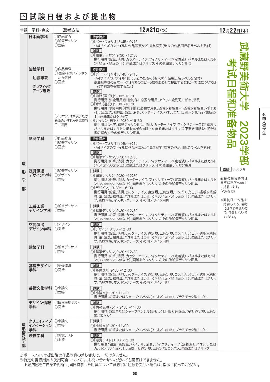 (映像学科的B日程考试只有本学科的学部生和研究生能考)