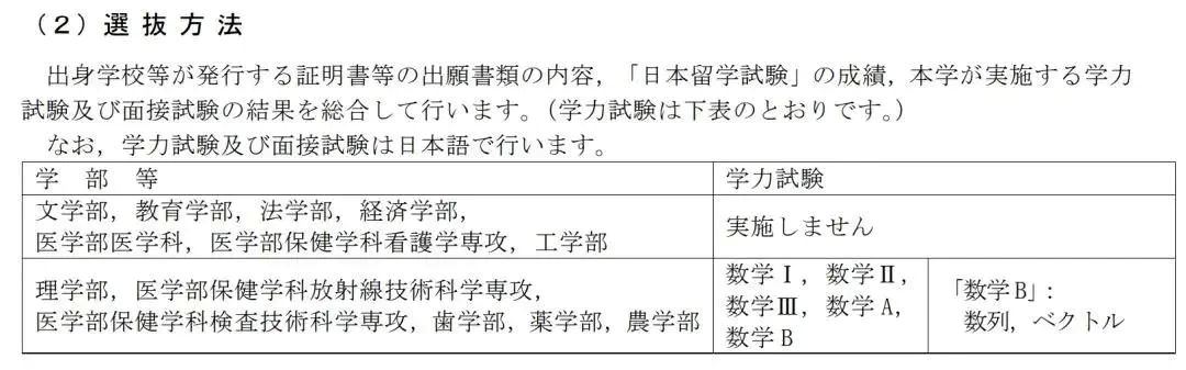 一、出愿 首先,想要参加日本大学的校内考,需要通过学校的书类审查。根据提交材料和一些外部考试分数,来初步选拔符合参加笔试的学员。部分学校没有笔试或面试,直接用书类材料判断是否合格。 值得注意的是:在书类审查环节,一些国立大学和私立名校会明确要求需要学生具备英语能力,缺少英语成绩(托福/托业/雅思)也是不能报考的。这一点需要在出愿的时候了解清楚。 通过书类审查之后,学生才有资格报名学校的校内考。