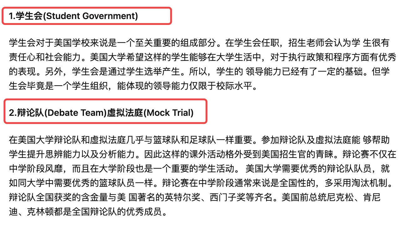 学生会对于美国学校来说是一个至关重要的组成部分。在学生会任职,会认为学 生很有责任心和社会能力。美国大学希望这样的学生能够在大学生活中,对于执行政策和程序方面有优秀的表现。另外,学生会是通过学生选举产生。所以,学生的 领导能力已经有了一定的基础。但学生会毕竟是一个学生组织,能体现的领导能力仅限于校际水平。