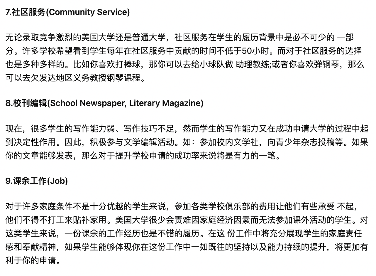 有关美国申请美国大学,课外活动是非常重要的。因为它是考核学生不可量化能力的重要组成部分。那么哪些学生课外活动美国名校的招生官特别青睐呢?为同学们列举以下十项活动,仅供参考。