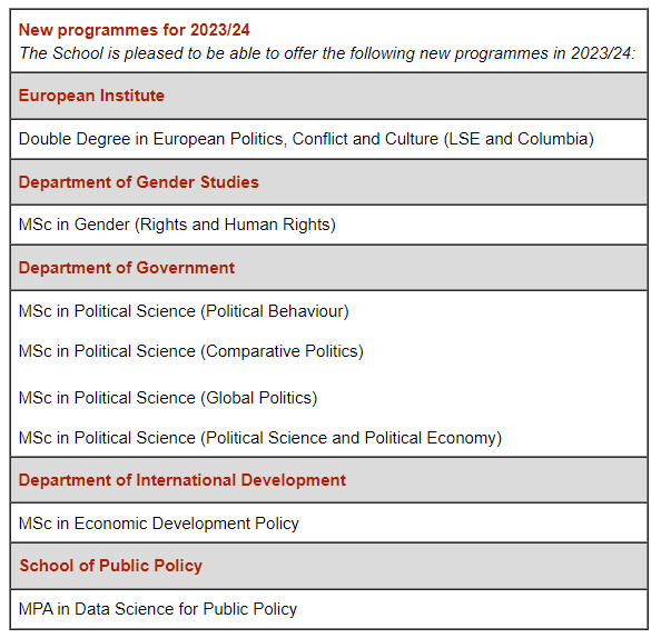 23 Fall 申请季大幕即将开启,在这个关键时间节点,LSE 也发布了 23 年(秋入学)新开和取消项目的名单。快来围观!