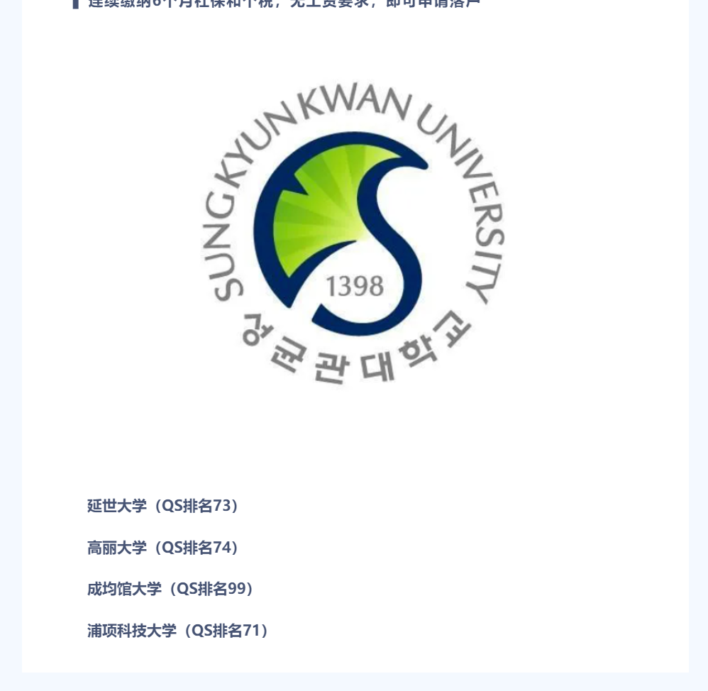 不在名单上的留学生也可以申请落户上海,但对工资和落户后期要求更高,需在同一家单位工作满1年后才能提出申请,工资需达到15507元以上。让我们一起看看名单上有哪些韩国学校!