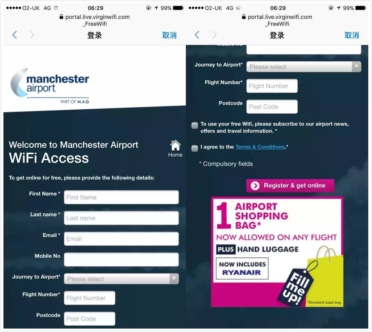现在英国的各大机场都有免费 wifi 供大家使用,连接起来很快,而且不需要很多繁琐的步骤,可以让你在下飞机第一时间给家里报个平安,也为联系接机的人提供了方便。这里用曼彻斯特机场举例,其他机场都大同小异哦。